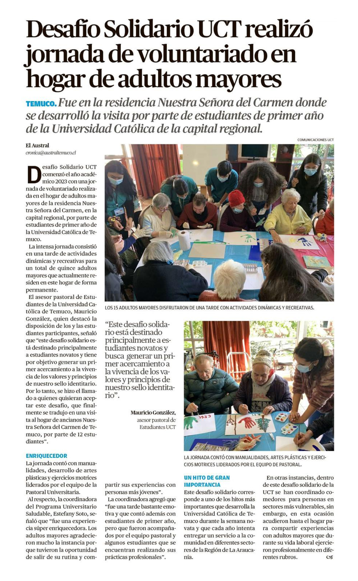 Inicio > Desafío Solidario UCT realizó jornada de voluntariado en hogar de adultos mayores