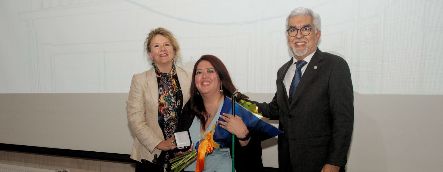 Durante la instancia, se entregó un reconocimiento especial a través de la Medalla Alumni 2023 que, en esta primera oportunidad fue recibido por Nicole Cádiz, que reúne una serie de criterios relativos a su vinculación y contribución con el medio y quien se desempeña como profesora de educación diferencial con especialización en necesidades especiales educativas transitorias y deficiencia mental. A su vez, Nicole trabaja como gestora de inclusión en el Hospital Hernán Henríquez Aravena de Temuco.