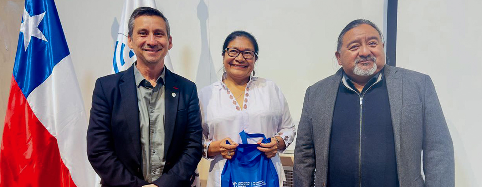 La socióloga guaraní Marcia Mandepora Chunday encabezó la clase magistral “Experiencias de Educación Superior Intercultural desde los Pueblos Indígenas”, organizada por la Cátedra Fray Bartolomé de las Casas de la Universidad Católica de Temuco.