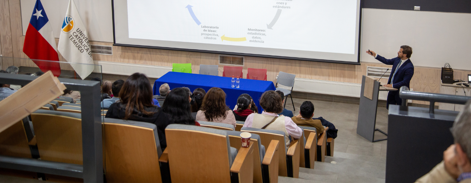 En el marco de la UCT Global Week, la Dirección de Relaciones Internacionales de la Universidad Católica de Temuco organizó el seminario “Políticas públicas en la educación superior y cooperación internacional para el desarrollo sostenible”, un encuentro que reunió a representantes de la Organización de las Naciones Unidas para la Educación, la Ciencia y la Cultura (UNESCO), el Ministerio de Educación (MINEDUC) y la Agencia Chilena de Cooperación Internacional para el Desarrollo (AGCID), quienes analizaron los desafíos y oportunidades que plantea la internacionalización del conocimiento desde una perspectiva tanto local como global.