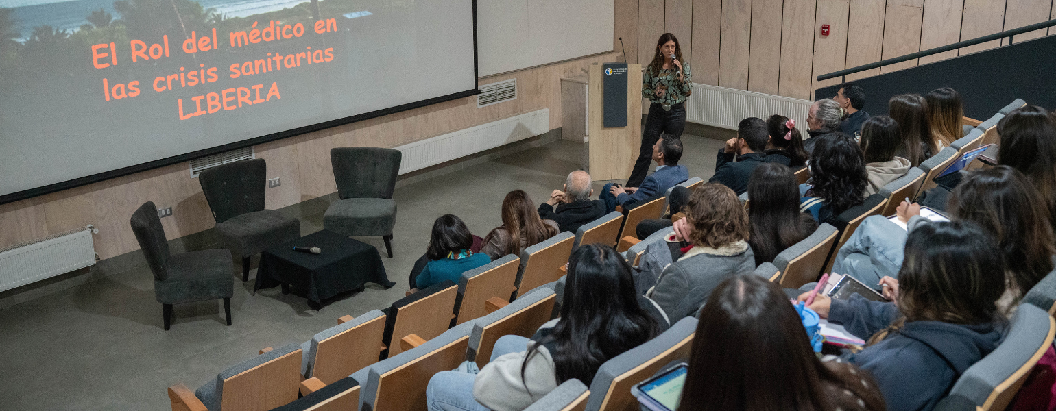 La expositora, Dra. Francisca Valdivieso, médico cirujano especialista en Ginecología y Obstetricia y académica de la Universidad Finis Terrae, centró su presentación en su trabajo junto a Médicos Sin Fronteras en Liberia, país que en ese momento salía de una prolongada guerra civil.