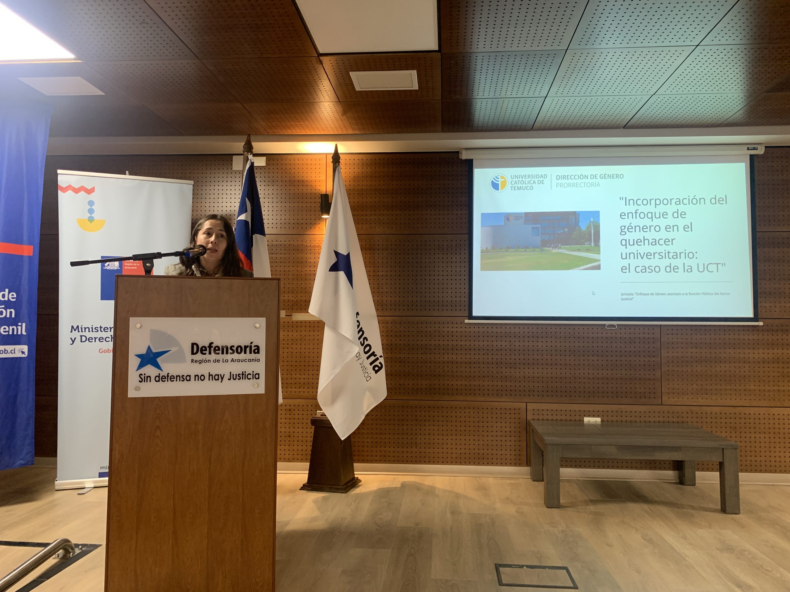 El equipo de la Dirección de Género de la Universidad Católica de Temuco participó de la jornada “Enfoque de Género asociado a la función Pública del Sector Justicia”, organizada en colaboración con la Mesa de Género de la Seremi de Justicia y Derechos Humanos de La Araucanía, en la Defensoría Regional de La Araucanía.