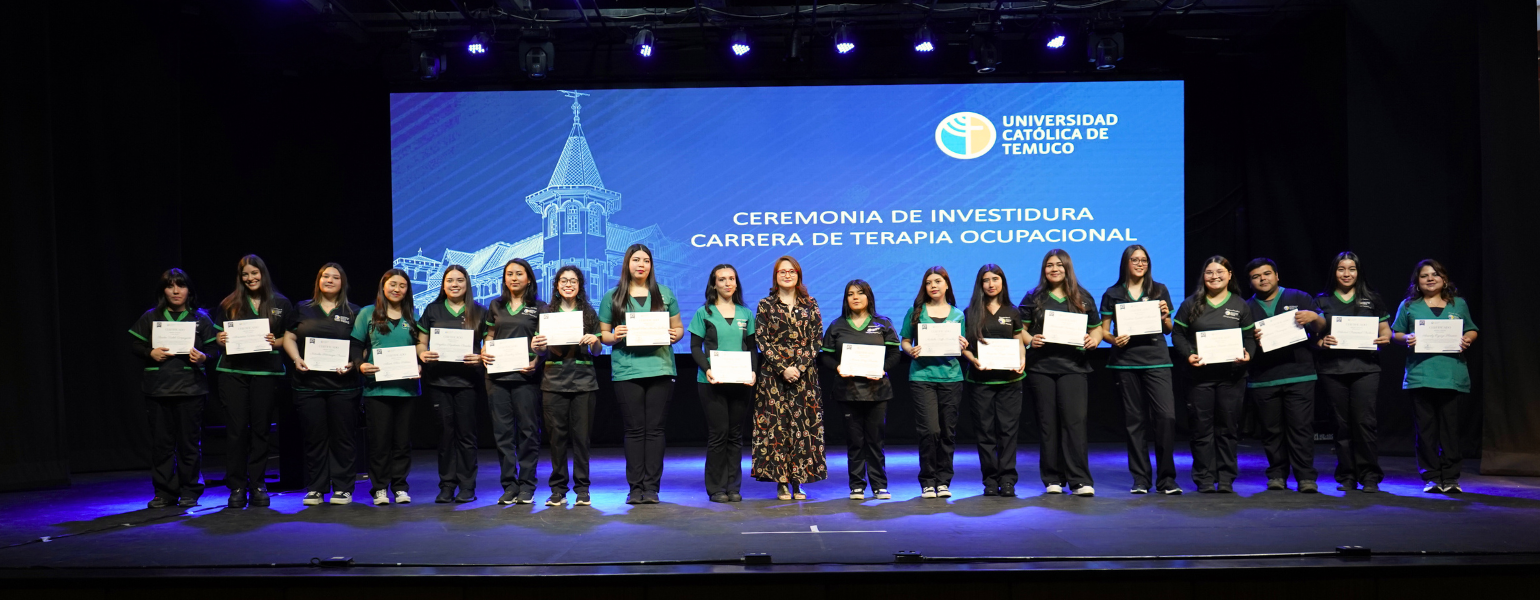 En el Aula Magna de la Universidad Católica de Temuco se realizó la Ceremonia de Investidura de la carrera Terapia Ocupacional, instancia que marca un hito formativo para las y los estudiantes de cuarto año, quienes se preparan para iniciar su proceso de prácticas profesionales, paso previo a su titulación.