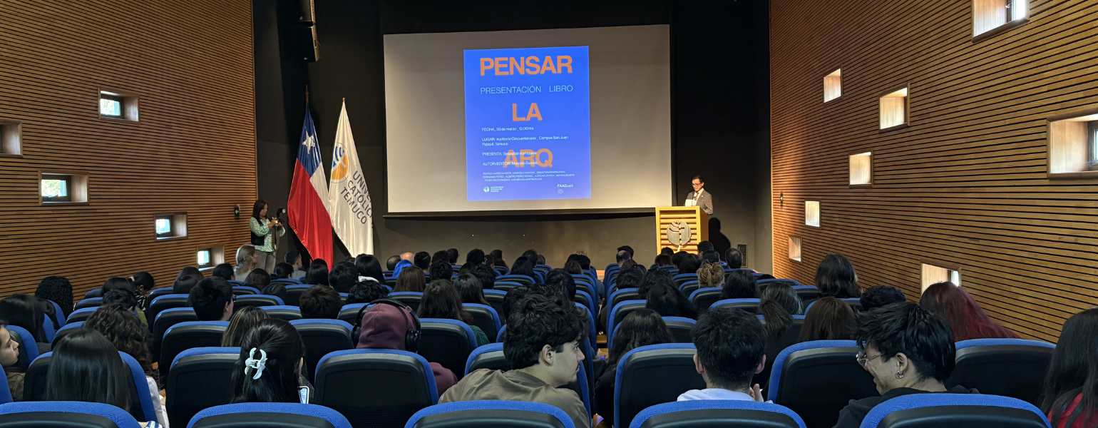 En el Auditorio Cincuentenario del Campus San Juan Pablo II de la Universidad Católica de Temuco se realizó el lanzamiento del libro “Pensar la arquitectura”, una publicación editada por el arquitecto y docente Marcelo Sarovic en conjunto con la editorial de la Facultad de Arquitectura, Arte y Diseño (FAAD) de la UCT.