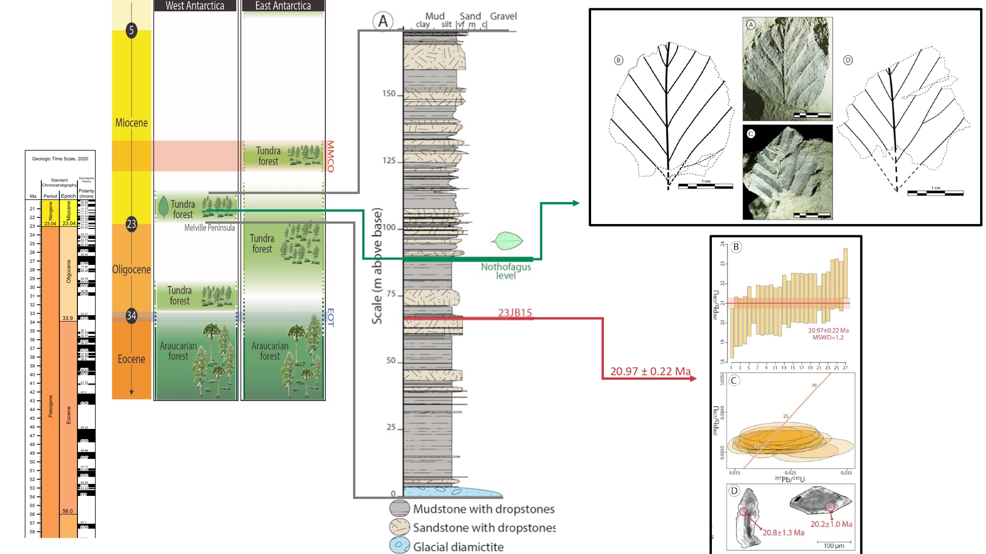 La datación geocronológica confirma que la vegetación tipo Tundra existió en esta región alrededor de 22 a 20 millones de años atrás, hallazgo más joven encontrado en la Antártida Occidental, lo que sugiere que Nothofagus persistió a las duras condiciones de la Edad de Hielo del Cenozoico Superior, o bien, se recolonizó durante los periodos cálidos intermitentes de la Antártica.