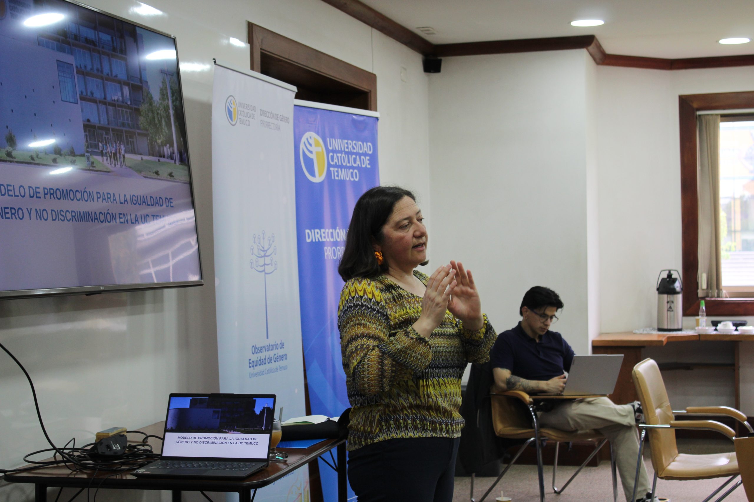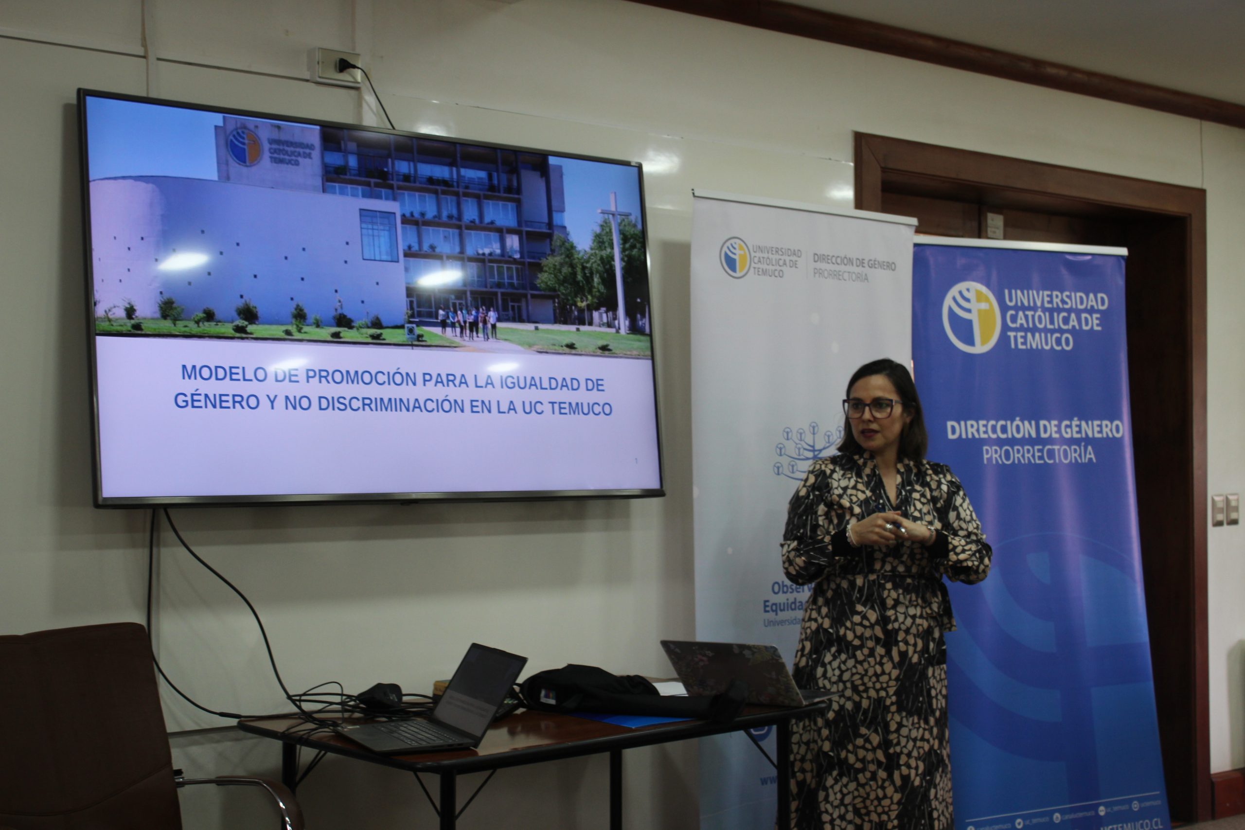 Carolina Gutiérrez, profesional de la Dirección de Género, explicó que el Modelo representa una propuesta innovadora dentro del sistema de educación superior chileno, al ser diseñado desde la propia realidad institucional de la Universidad Católica de Temuco.