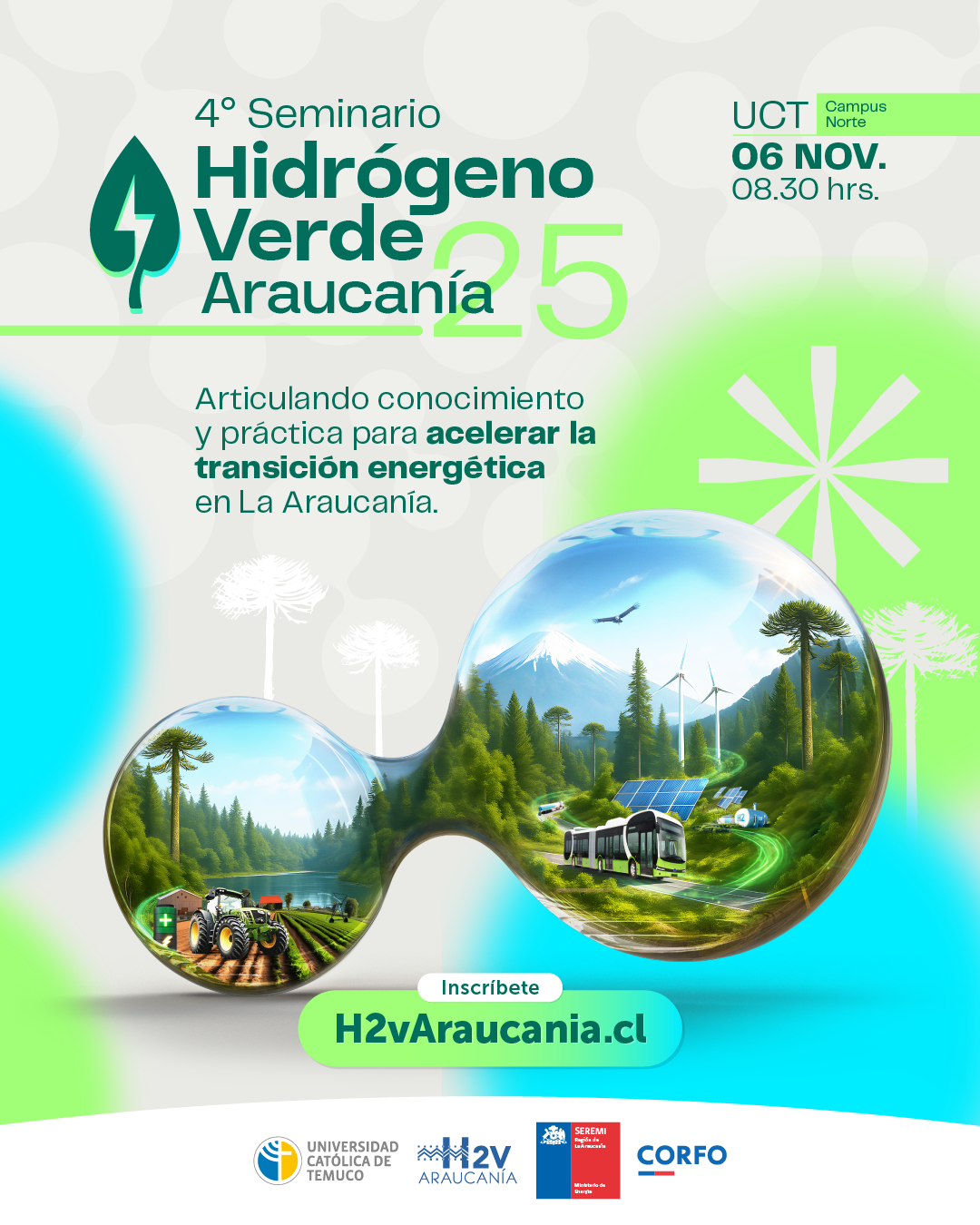 Las inscripciones están abiertas para el 4° Seminario de Hidrógeno Verde, organizado por la Mesa Interinstitucional de H2V junto a la Universidad Católica de Temuco, la Seremi de Energía y Corfo.